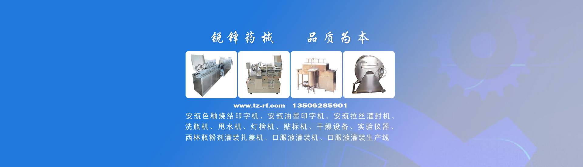 公司主要產(chǎn)品有:安瓿色釉燒結(jié)印字機、安瓿油墨印字機、安瓿拉絲灌封機、西林瓶粉劑灌裝機、洗瓶機、安瓿甩水機、燈檢機、貼標機、口服液灌裝機、口服液灌裝生產(chǎn)線、制藥機械、干燥設(shè)備、實驗儀器等,并可根據(jù)客戶要求非標定制生產(chǎn)。產(chǎn)品廣泛用于制藥、食品、保健品、化妝品等行業(yè)。